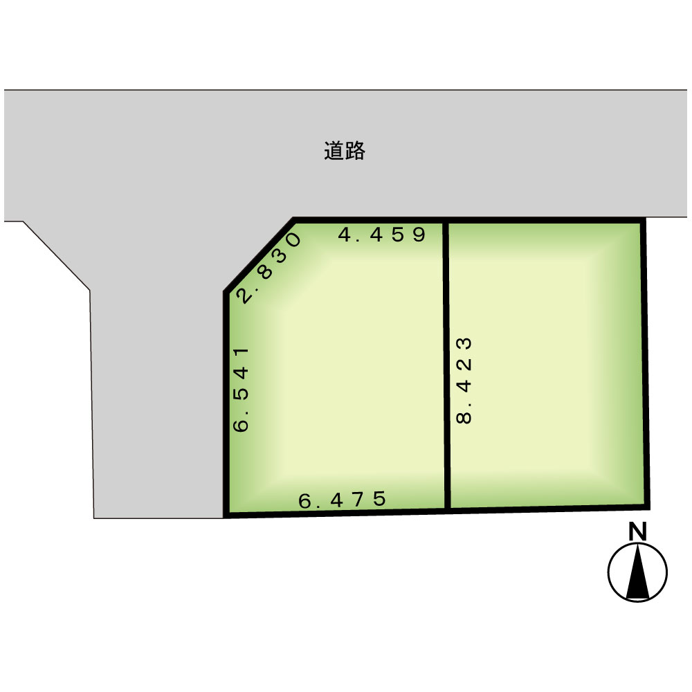 | 接道状況: | 北4m私道に約4.4m接道 <br />西側約4m公道に約6.6m接道 |